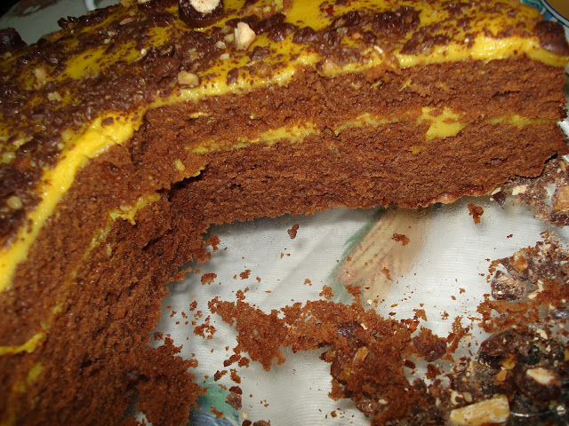 Deixei arrefecer um pouco e recheei e cobri o bolo.