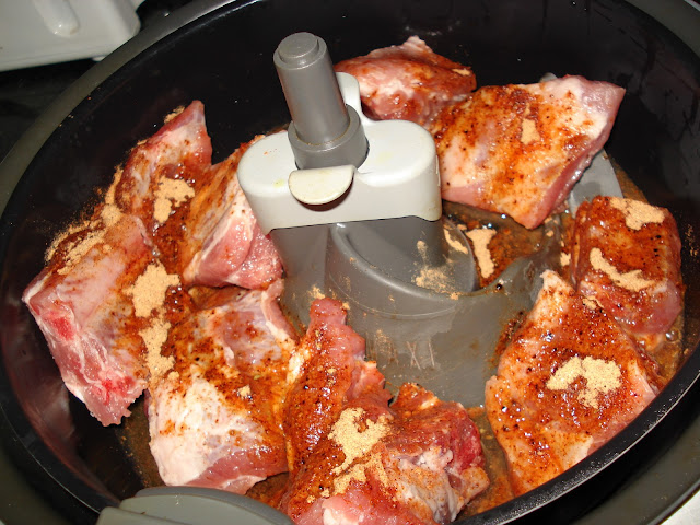 E é tão simples...temperei o entrecosto e deitei na actifry...programei cerca de 25 minutos e já está.