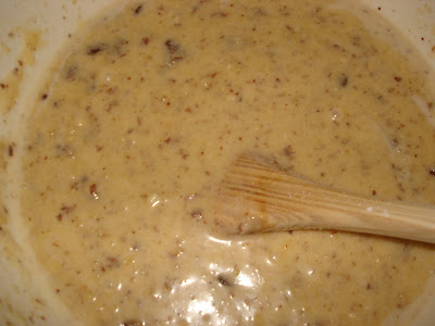 Bati muito bem os ovos, com o açúcar. Juntei então o óleo, o leite, a farinha, o fermento e a canela.